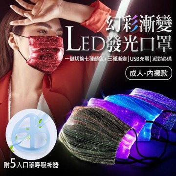贈口罩呼吸神器x5 幻彩漸變LED發光生活口罩 成人內襯款