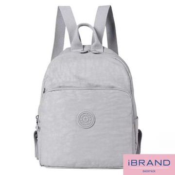 iBrand後背包 輕盈防潑水素色大口袋尼龍後背包-淺灰色 MDS-8502