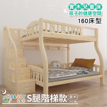 【HABABY 環安家居】無毒家具製造商 兒童雙層床(上下舖) S腿-階梯款-160床型-原木版