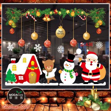 MODACore 摩達客 無痕窗貼玻璃貼優惠組合 YS-WS20007 2個 探頭聖誕老人雪人麋鹿 75 x 35cm
