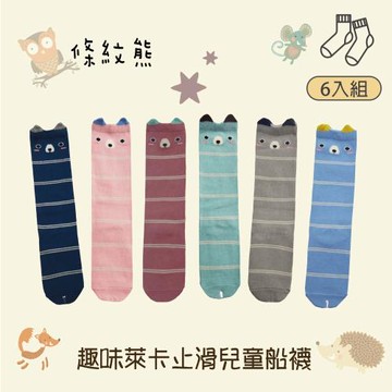 【DR.WOW】(6入組) 趣味萊卡兒童止滑長襪-條紋熊