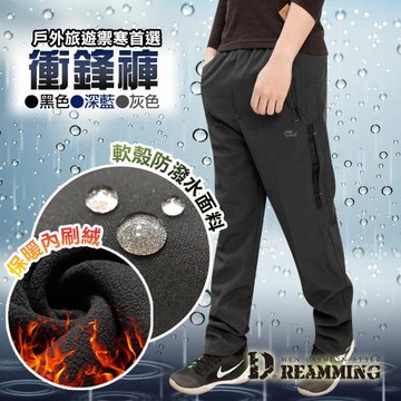 【Dreamming】功能型休閒防風防潑水厚刷毛鬆緊腰衝鋒褲 雪褲(共三色)