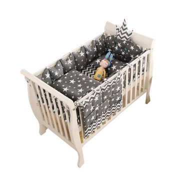 【HABABY 環安家居】嬰兒床專用-4件套組-適用120x60cm嬰兒床型(內含四面護欄床圍、床包)