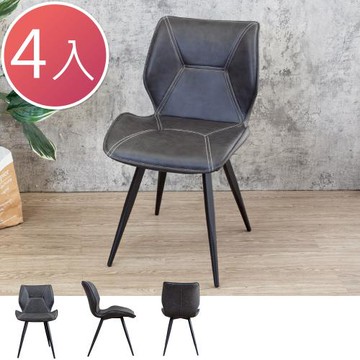 Boden-雷蒙工業風黑灰色皮革餐椅/單椅(四入組合)