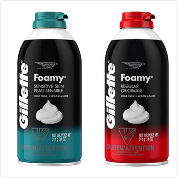 (2瓶超值組)美國Gillette吉列-FOAMY經典男士極淨滑順溫和滋潤刮鬍泡311g/瓶-原味(紅)(刮鬍修容泡沫,臉部剃鬚膏,男性潔顏修鬍劑)