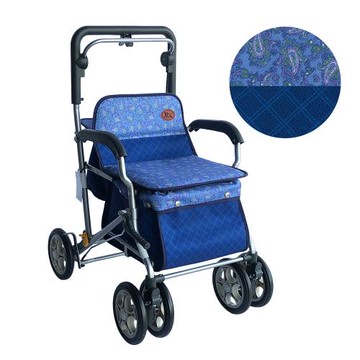【Rollker羅克】購物車 助行車 助步車 手推車 購物推車 折疊收納 步行輔助車 銀髮族(NO.335-碎花藍)