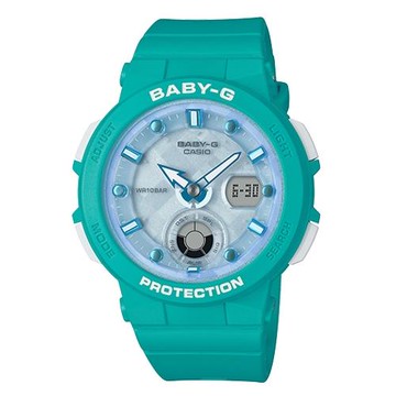 【CASIO 卡西歐】BABY-G 海洋風情雙顯女錶 樹脂錶帶 蒂芬妮綠 防水100米 世界時間(BGA-250-2A)