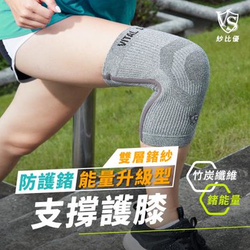 【Vital Salveo 紗比優】全能型骨架護膝-單支入 (淺灰) (護膝套/鍺能量護腿套/透氣減壓-台灣製造)