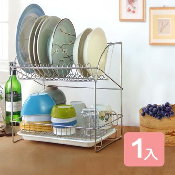 時尚工藝廚房雙層碗盤瀝水架瀝水籃(加附匙筷架)