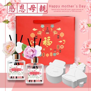 QIDINA 母親節組合(玫瑰花擴香瓶 X 2+藻土塊 X 2 + 送禮袋)