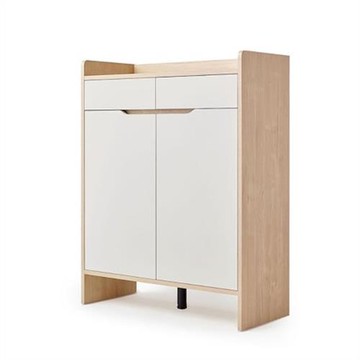 hoi!好好生活 林氏木業北歐小戶型雙門對開雙抽鞋櫃 JF2N-A 原木色+荷花白