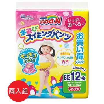 日本 Goon 兒童游泳戲水女生專用尿褲Big號12張入X2包入