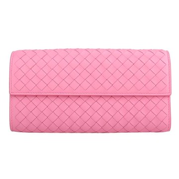 BOTTEGA VENETA經典羊皮編織皮革翻扣內拉鍊長夾(彩虹粉)