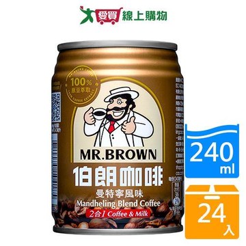 金車 MR.BROWN 伯朗咖啡 曼特寧風味 無糖 240ml 24罐