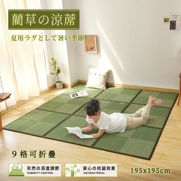 【沐眠家居】日式和風 天然藺草可折疊透氣涼蓆 ( 九宮格- 195x195cm) 露營墊 和室墊 禪風 榻榻米 客廳墊 藺草蓆