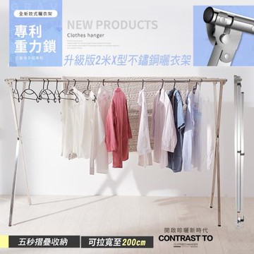 全不鏽鋼X型伸縮防風晾曬衣架2.0米