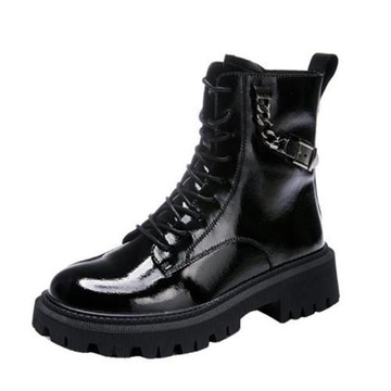 【JP Queen New York】魅力升級漆亮皮綁帶馬丁靴(黑色)