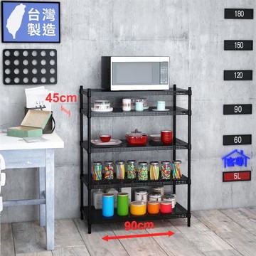 客尊屋-粗管-免運費-沖孔-層架-小資型-45x90x120cm 黑武士沖孔-五層架