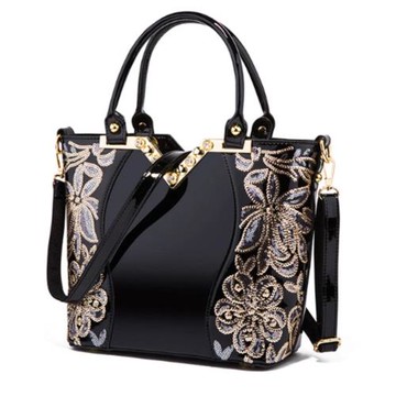 【Jpqueen】炫麗刺繡亮皮單肩斜背手提女用包(4色可選)