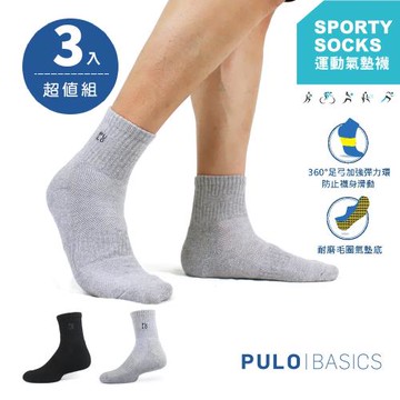 PULO-慢跑機能氣墊短筒襪-3雙入 (短襪襪/厚襪/運動襪/休閒襪)