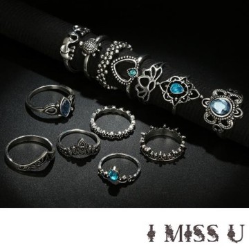 【I MISS U】波西米亞民族風藍寶石動物元素關節戒13件戒指套組