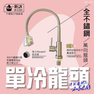 【新沐衛浴】304不鏽鋼萬向水龍頭-單冷(單出水/冷水/2.5CM龍頭孔徑)