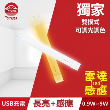 TOYAMA特亞馬TS1磁吸USB充電可調光雙模式長亮+感應LED燈0.9W~9W 雙模式(長亮照明、感應照明)