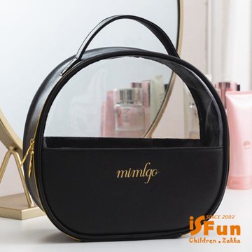iSFun半圓月牙 防水透視盥洗化妝包 大號黑