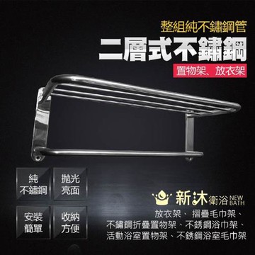 【新沐衛浴】不鏽鋼雙層置物架(衣架、 毛巾架、 不鏽鋼置物架、不銹鋼浴巾架、不銹鋼浴室毛巾架)