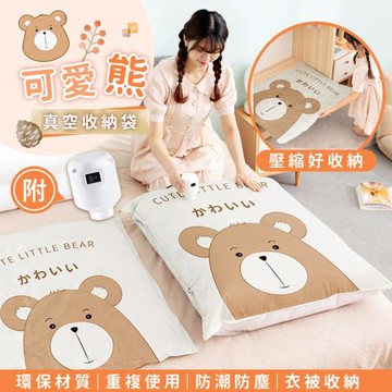 【太力】6件電泵套組可愛熊系列壓縮收納袋(壓縮袋*5+抽氣電泵*1)