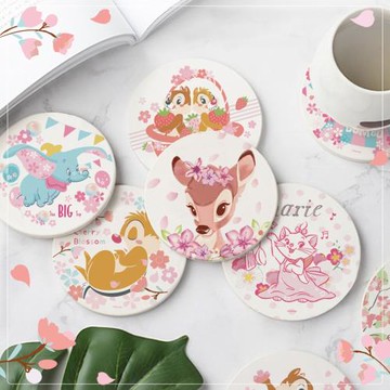 網狐家居-迪士尼Disney 櫻花系列 珪藻土吸水杯墊 10x10 2入/組 [現貨] 小飛象/奇奇蒂蒂/瑪麗貓/斑比