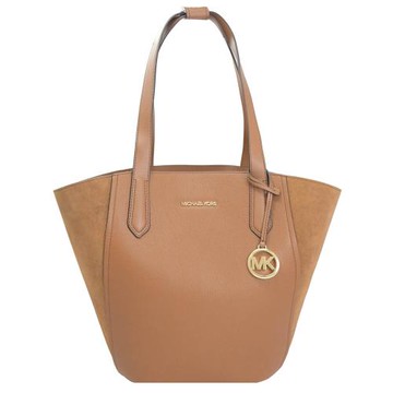 MICHAEL KORS PORTIA 浮雕LOGO絨面皮革肩背包.咖