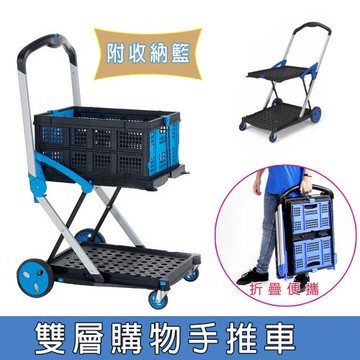 【acme】摺疊式雙層購物手推車/載貨車/手拉車(附摺疊收納籃)