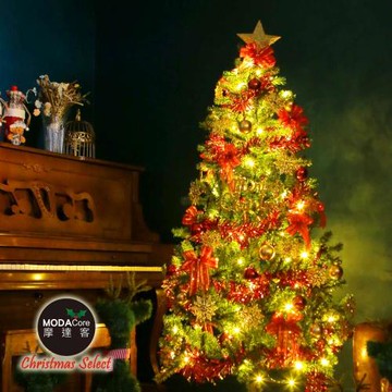 摩達客耶誕-6尺/6呎(180cm)特仕幸福型裝飾綠色聖誕樹 綺紅金雪系配件+100燈LED燈暖白光*1(贈控制器/本島免運費)