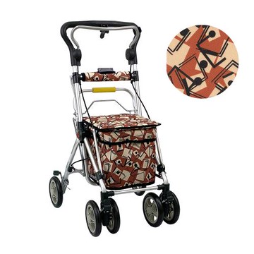 【Rollker羅克】購物車 助行車 助步車 手推車 購物推車 折疊收納 步行輔助車 銀髮族(NO.335-紅棕格)
