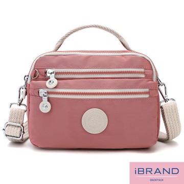 iBrand 輕盈防潑水雙拉鍊撞色手提側斜背包 -豆沙粉 MDS-8642