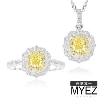 MYEZ 30分天然黃彩鑽18K金鑽戒女戒婚戒 鑽墜 送鉑金鍊 柔情(二款擇一)