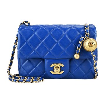 CHANEL 經典菱格粒紋小羊皮金球鍊帶翻蓋斜背包(藍色)
