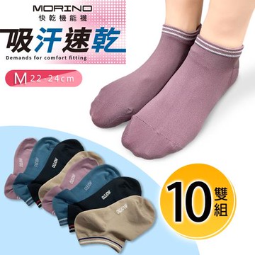 【MORINO】(10雙組)女襪MIT吸汗速乾輕量短襪(條紋)/船襪 /糖果襪 /船型襪/少女襪(M22~24cm)