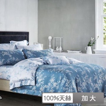 貝兒居家寢飾生活館 100%天絲四件式兩用被床包組 加大雙人 纖纖花語藍