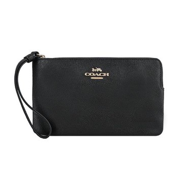 COACH 經典馬車素面防刮L拉鍊手拿包(中/黑)
