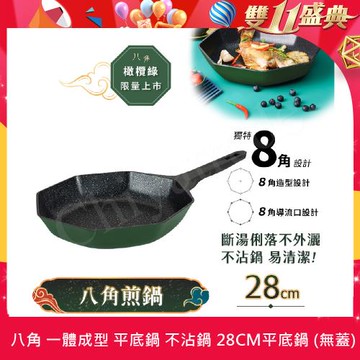 【八角維京】八角一體成型 不沾鍋 煎鍋 28cm IH全對應 無蓋 (橄欖綠)