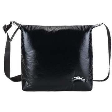 LONGCHAMP LE PLIAGE ALPIN系列尼龍帆布刺繡方形斜背包(黑)