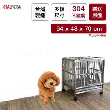 彬彬小舖 折疊白鐵不鏽鋼狗籠 結實穩固 附托盤 + 輪子 1個 不鏽鋼本色 L(95 x 65 x 75cm)