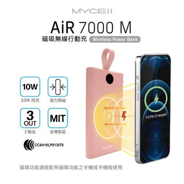 [MYCELL]Air7000M 磁吸無線閃充行動電源 粉