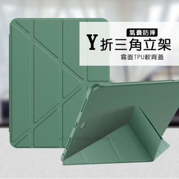 VXTRA氣囊防摔 iPad Air (第5代) Air5/Air4 10.9吋 Y折三角立架皮套 內置筆槽(暗夜綠)