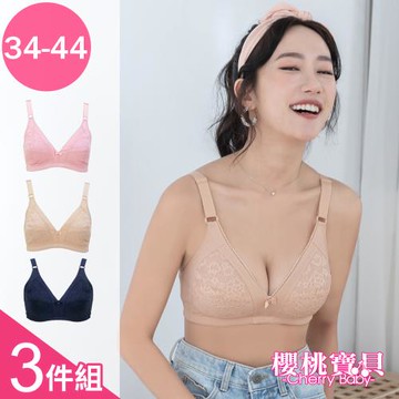 Cherry baby (34-44)無鋼圈絲棉薄杯全罩蕾絲內衣 - 三件組