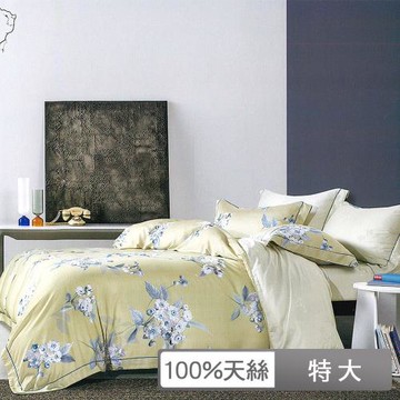 貝兒居家寢飾生活館 60支100%天絲四件式兩用被床包組 裸睡系列 特大雙人 片葉悠然