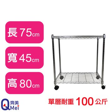 【Qi Mei 齊美】75X45X80CM 二層附輪收納式鐵力士架-台灣製_波浪架 鐵架 收納架 置物架 電器架 展示架 貨架 層架