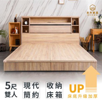 【IHouse】山田 日式插座燈光房間二件組(床頭+收納床底)-雙人5尺